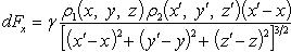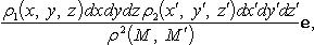 Примеры решения задач: даны два материальных тела: T_1 с плотностью р_1(x, y, z) и T_2 с плотностью р_2(x, y, z). Найти силу F притяжения тела T_1 телом T_2. |